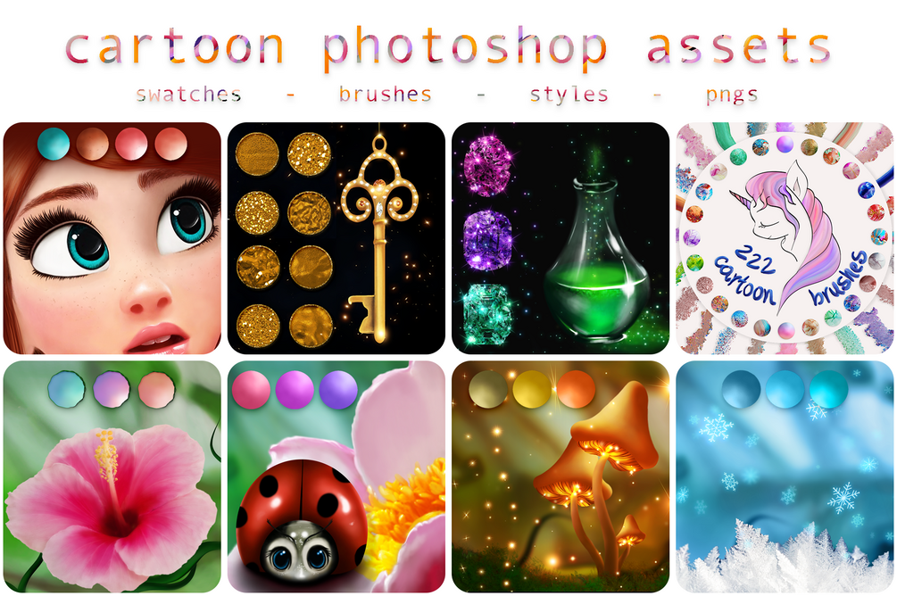 - Spring 330 Swatches, 55 Brushes, 70 PNGs