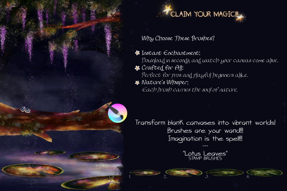 Unlock the tools that turn imagination into art! Whether you’re sketching whimsical forests, painting starlit skies, or crafting stories with every stroke, these brushes are your gateway to a world where creativity knows no bounds.